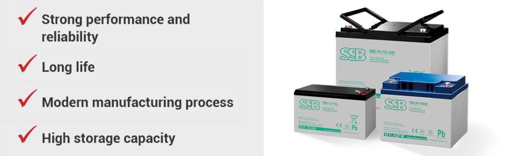 SSB batteries feature the latest, most innovative technology for valve-regulated, sealed rechargeable lead batteries. For more than 15 years, these have been manufactured using the latest production methods. SSB Battery offers a range of VdS approved batteries. These maintenance-free AGM batteries feature the latest glass fibre mat technology. Thanks to the continuous optimization of our products based on the latest research, SSB Battery guarantees the highest degree of quality, reliability and innovation.